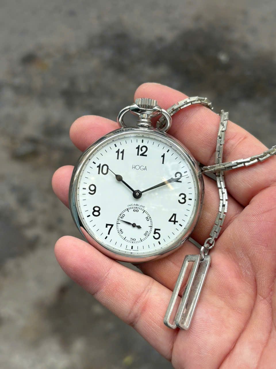 Hoga pocket Vintage manual winding incabloc watch stainless Steel , case no.14002, Swiss made.