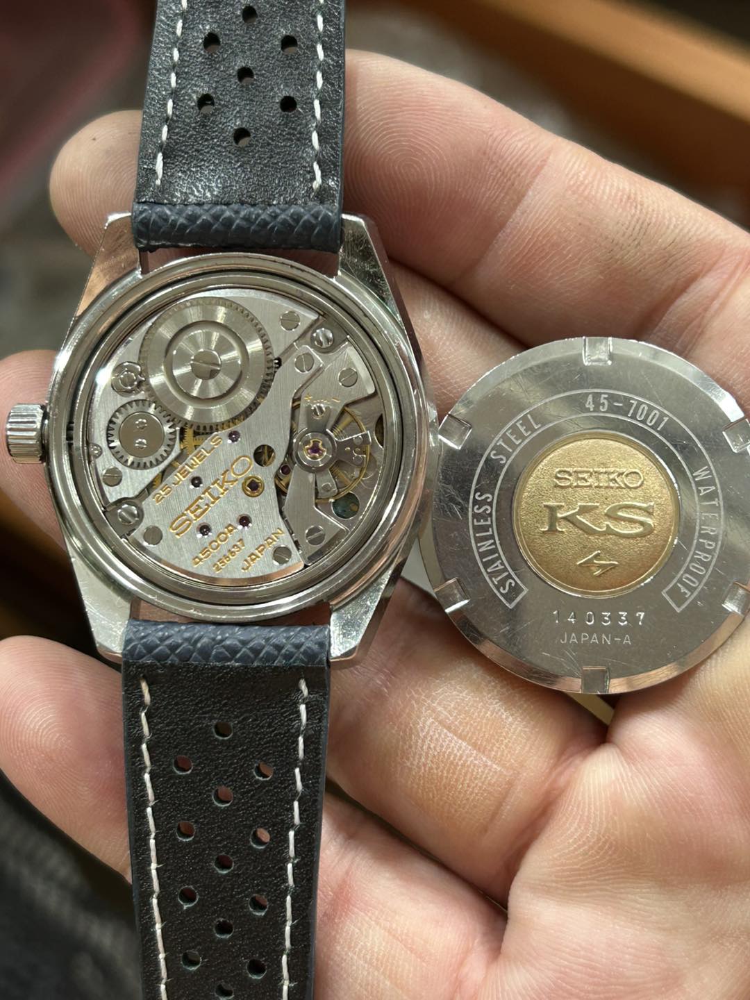 Seiko KS hand winding no date, Cal.45-7001 hi beat 36000, Stainless steel case / Case no.140337 , made in Japan .