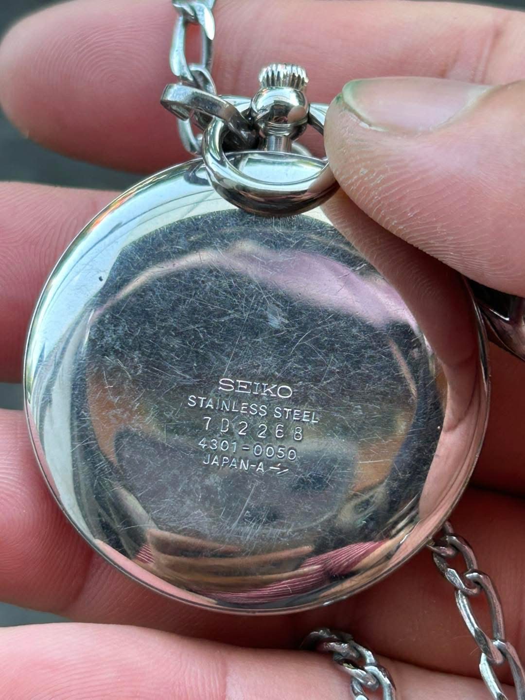 Seiko pocket watch Quartz 4301-0050 all Stainless steel , case no.7D2268, made in Japan .