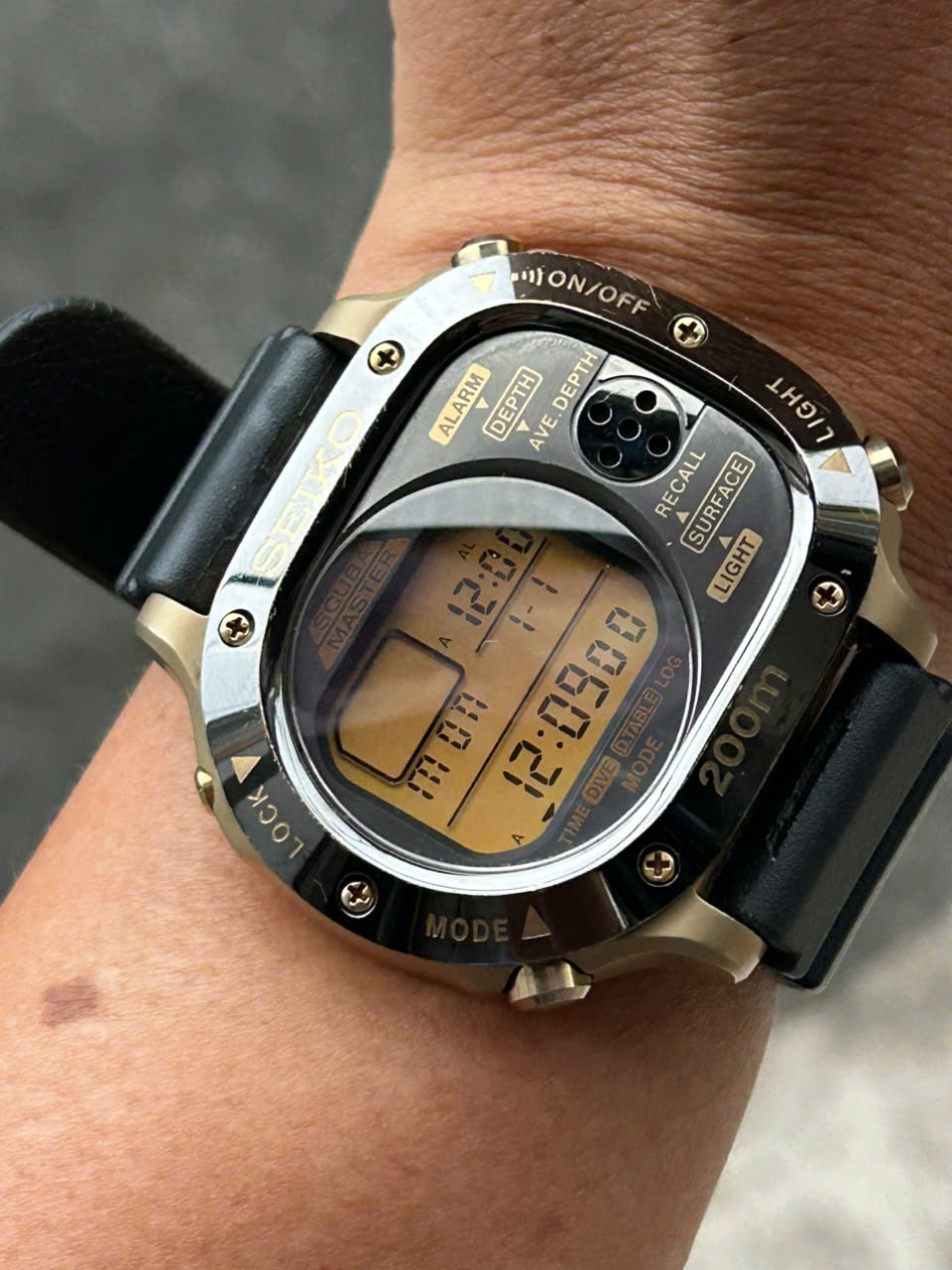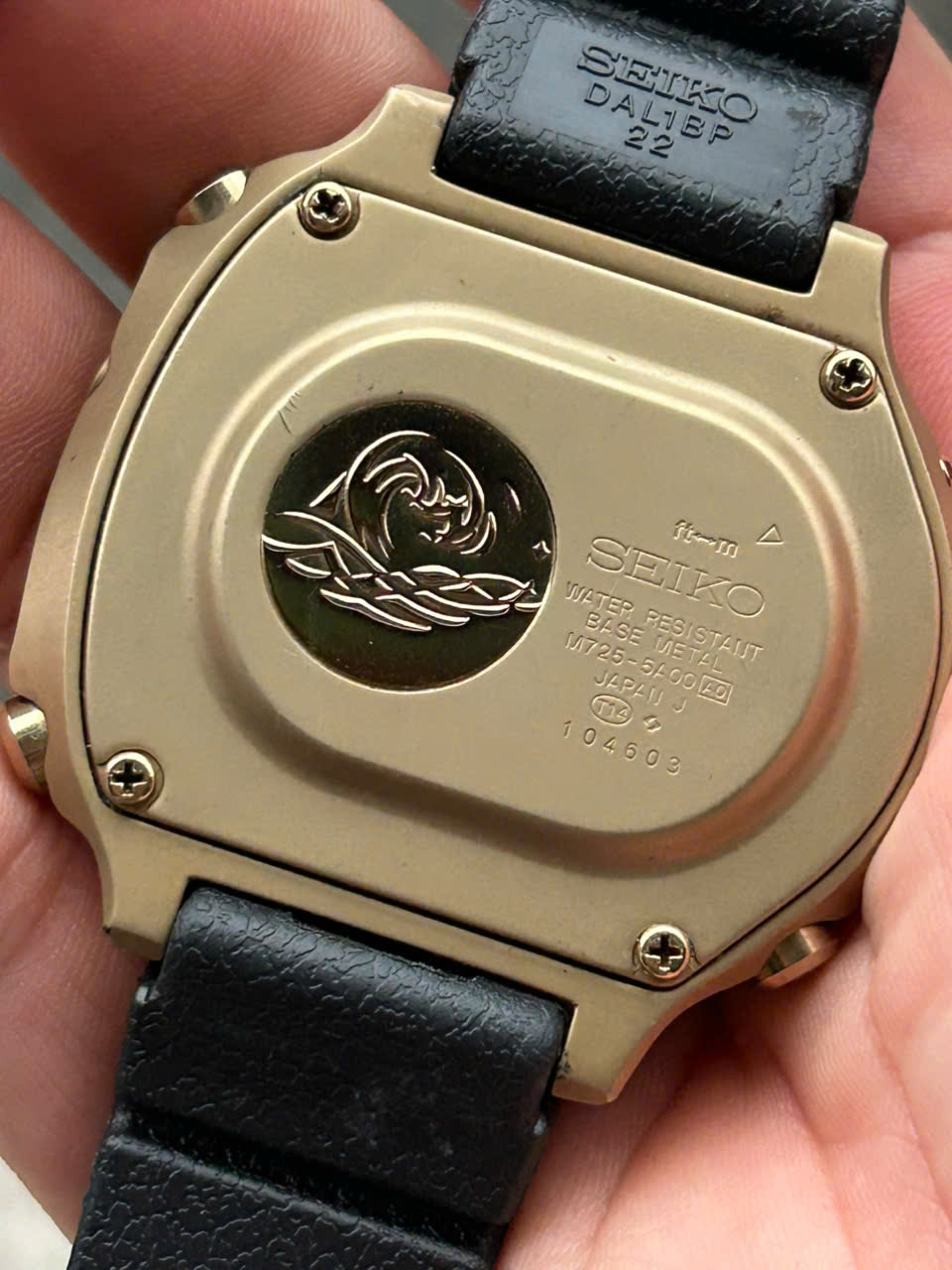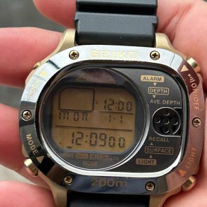 Seiko Scuba Master M725-5A00 Vintage Digital Black Gold Metal Quartz Mens Watch/ case no.104603, Made in Japan.