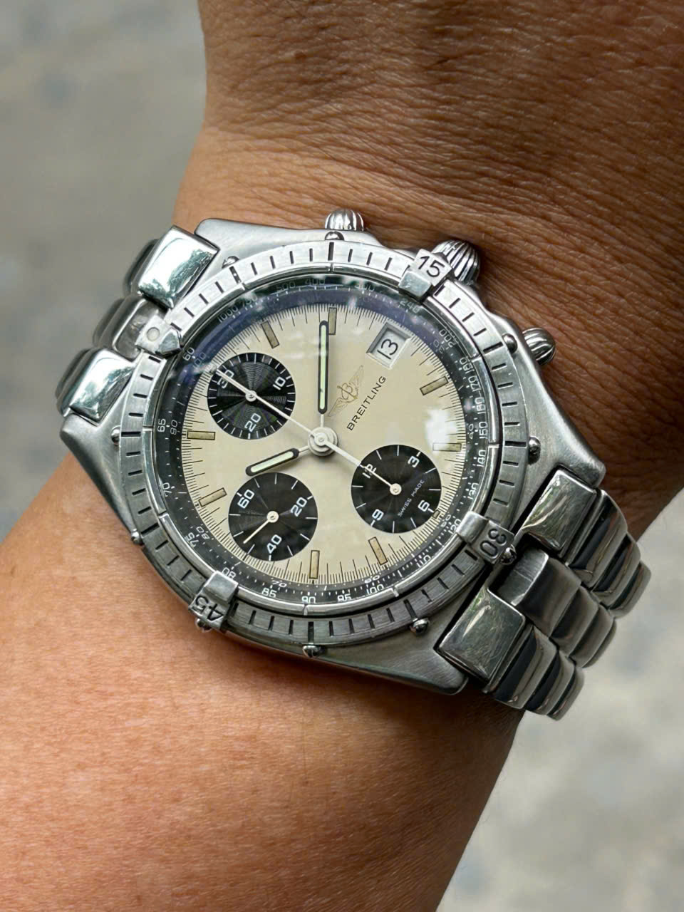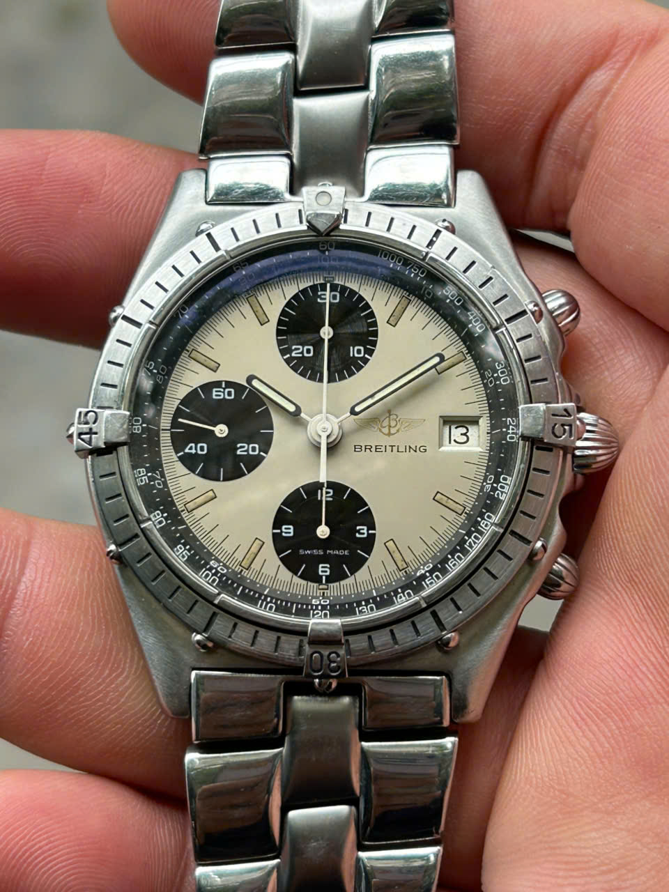 Vintage 1990s Breitling Chronomat Panda dial, Ref.81950, Size 38mm, Swiss made.